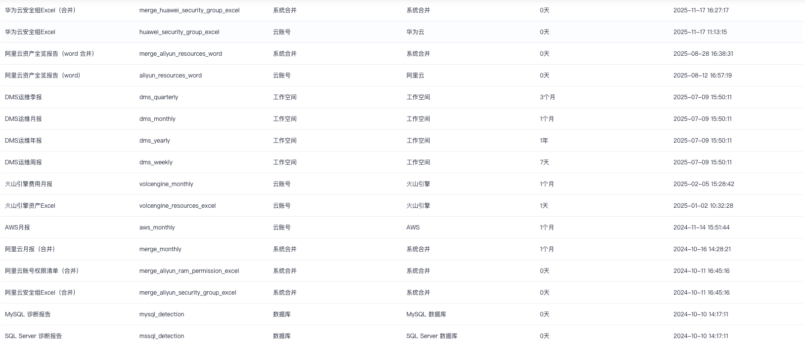 点击左上角 “功能菜单”,找到 “报告管理”-“报告版本” 后,点击进入“[报告版本](https://enterprise.cloudcare.cn/report/version)”功能页面。  # 报告版本 > 用于展示报告版本的信息。    ### 筛选 报告版本页面支持以下条件筛选方式: - 版本类型(系统/云账号/MySQL 数据库/SQL Server 数据库) - 对象类型(阿里云/腾讯云/数据库/AWS/火山引擎) - 版本名称(支持版本名称模糊检索)